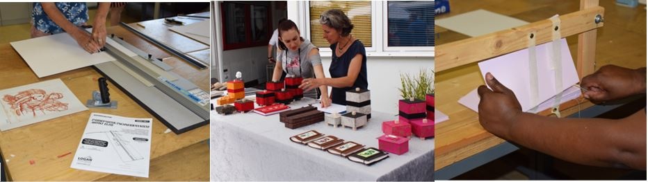 Die Förderung der Postcode Lotterie wurde für eine professionelle Ausstattung eingesetzt, bestehend aus Passepartoutschneidegerät, Staffeleien, Pinsel, Linolschnittmesser, PC, Drucker, Scanner und höhenverstellbare Tische. Die neuen Werkzeuge unterstützen die Teilnehmer in ihrem handwerklichen Wirken, fördern die Qualität der Arbeiten und ermöglichen ein vielfältiges Angebot.