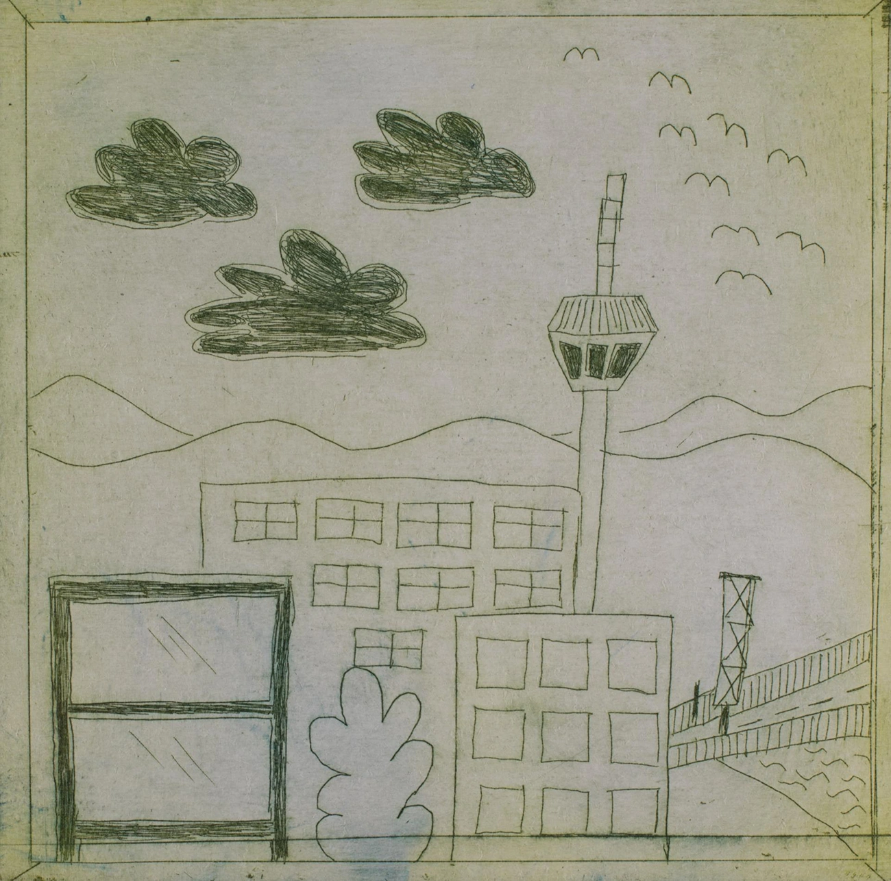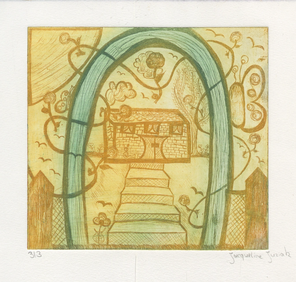 - Bild 11: – | Titel: Schrebergarten | Ätzradierung 15,1,cm x 14cm | 2019