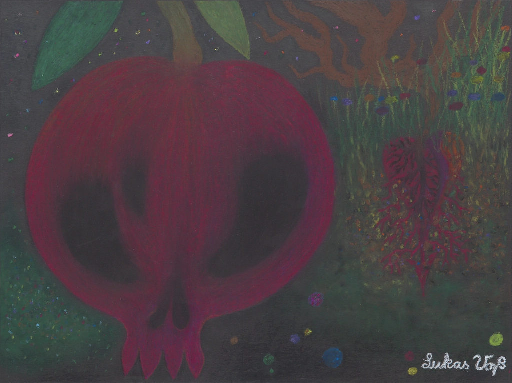 - Bild 16: Lukas Voß | Titel: Granatapfel | Zeichnung Ölkreide 30cm x40cm | 2019