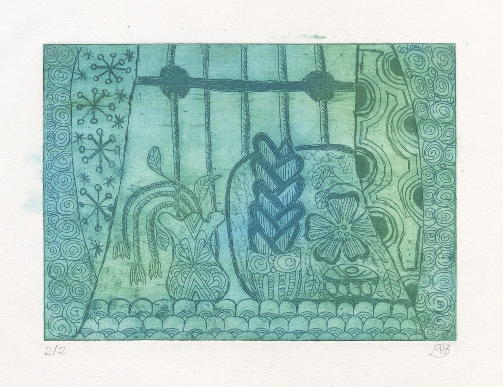 - Bild 5: – | Titel: Stilleben | Ätzradierung 12,8,cm x 18cm | 2020