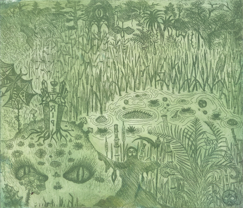 - Bild 7: Lukas Voß | Titel: Totenwald | Ätzradierung 16,1cm x 13,9cm | 2019