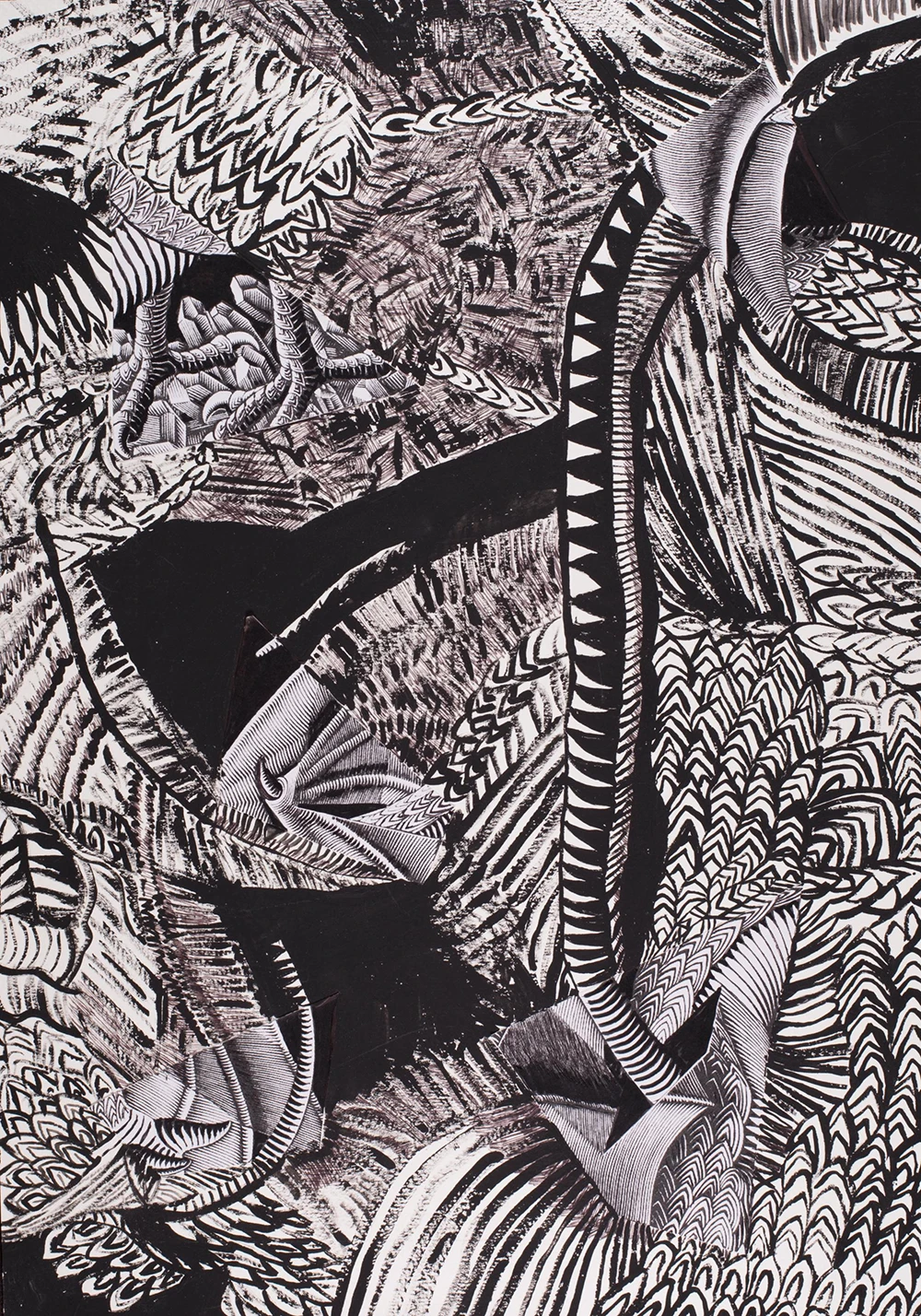 - Bild 18: – | Titel: Fleischfressende Pflanze | Zeichnung Ölkreide 44,9cm x 63cm | 2019
